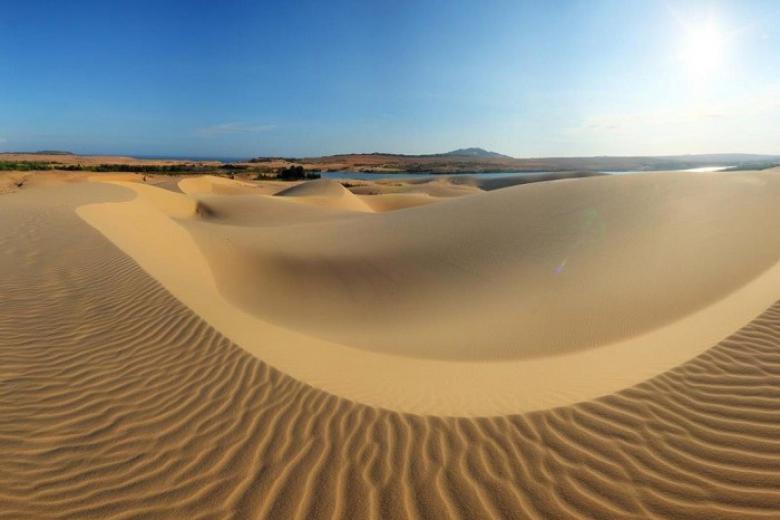 Điểm du lịch phải nhắc tới đầu tiên ở Mũi Né đó chính là những đồi cát trải dài mênh mông bất tận. Có hai đồi cát ở Mũi Né là đồi cát Vàng và đồi cát Trắng, trong đó đồi cát Trắng lớn hơn và được dân địa phương gọi là Bầu Trắng, Hồ Trắng hay Bàu Sen. Cảm giác được đi chân trần trên đồi cát vô cùng thú vị, bạn cũng có thể lướt ván, hay lái xe bốn bánh dạo quanh để trải nghiệm cảm giác gần gũi thiên nhiên chắc chắn nó sẽ không dễ quên.