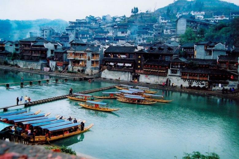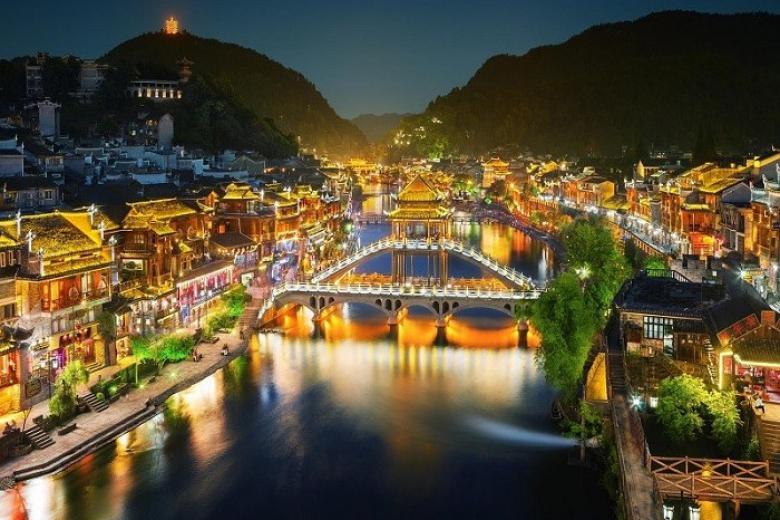 Điểm đến nổi bật thứ 2 không thể không nhắc đến là Phượng Hoàng cổ trấn. Đi dạo trên những con phố nhỏ lát gạch cùng hai bên phố là dãy nhà cổ kính, ngắm phố thị bên dòng Đà Giang, bạn sẽ cảm nhận được vẻ đẹp cổ kính, nét văn hóa truyền thống lâu đời dường như bị thời gian quên lãng trong thời kỳ công nghệ hiện đại ngày nay.