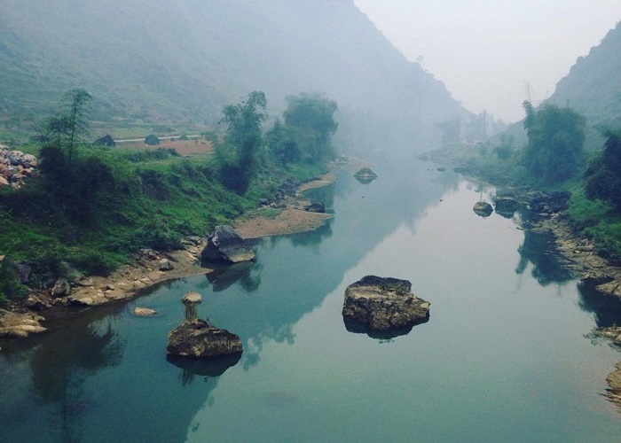 Dọc theo dòng sông Miện là làng mạc, là những đồi cọ, rừng cây và những nếp nhà sàn của đồng bào dân tộc Mông, Tày ẩn hiện,… Nhịp sống nơi rẻo cao Hà Giang vẫn lặng lẽ, êm đềm trôi qua từng ngày, bình lặng, dung dị mà an nhiên đến lạ thường. Nếu có thời gian, bạn hãy cứ một mình rong chơi, chạy dọc theo bờ sông hoặc thỉnh thoảng dừng lại, tĩnh tại mà ngắm cảnh.