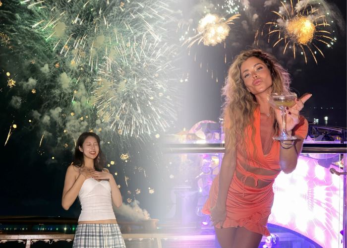 Theo đó, du khách có thể check-in ở các góc ngắm pháo hoa tuyệt đẹp ở ngoài trời tại ban công tầng 2 và tầng 3, thỏa thích chiêm ngưỡng ánh sáng rực rỡ được tạo nên từ hơn 400 quả pháo với 40 hiệu ứng từ pháo nước, pháo diều tạo thành những màn phun trào rực rỡ từ lòng đại dương.