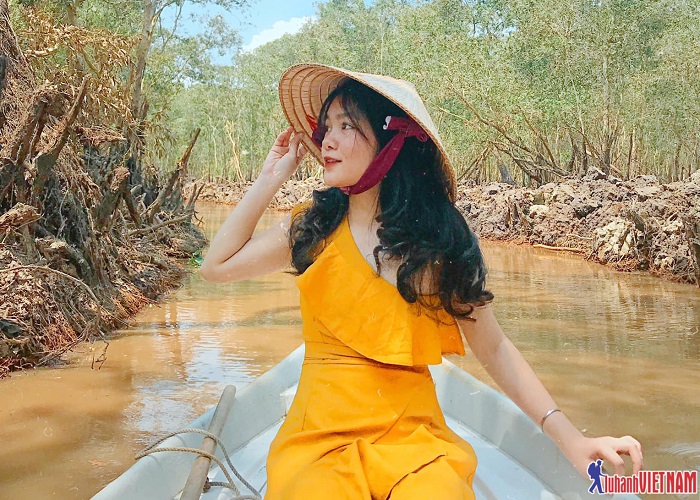 Mình trải nghiệm chuyến hành trình bằng cách đi ghe thuyền, giá mỗi người sẽ mất khoảng từ 50.000 đến 60.000 đồng thôi. Điều đặc biệt là ở đây là những người lái thuyền sẽ không ghép đoàn khác trên cùng một thuyền và họ còn tâm lý chuẩn bị sẵn cả nón lá trên thuyền mình che nắng nữa!