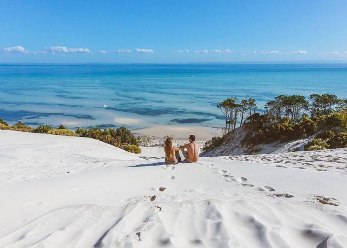 Một trong những điểm đặc biệt của đảo Moreton Úc chính là bãi cát trắng tinh và nước biển trong xanh. Biển ở đây nổi tiếng với cát trắng mịn và là nơi bạn có thể bơi cùng với cá nhám và thậm chí tham gia vào các hoạt động như lặn biển. Moreton cũng là địa điểm để du khách có thể thư giãn dưới nắng và tận hưởng không gian biển cả tuyệt đẹp.