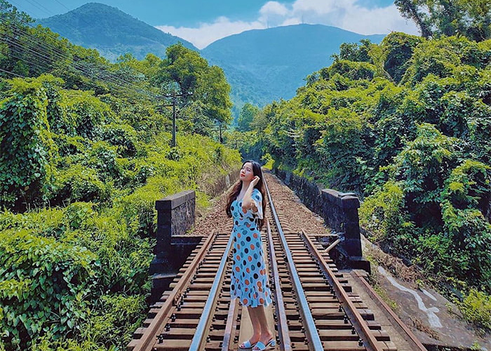 Bên cạnh cầu vòm Đồn Cả gây sốt thì đường ray xe lửa và khung cảnh tươi mát ở ga Hải Vân Bắc cũng là tọa độ check-in vô cùng thu hút với các bạn trẻ ở khu vực Huế - Đà Nẵng.