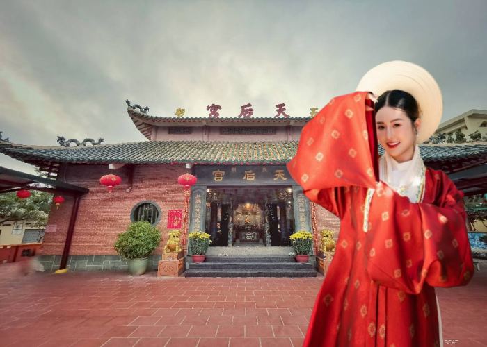 Những góc check-in đậm chất "cổ trang" thu hút đông đảo bạn trẻ tại Miếu Bà Ngũ Bang Vũng Tàu. Ảnh: HaloiKhi check-in ở Miếu Bà Ngũ Bang Vũng Tàu, du khách nên lưu ý một số thông tin để dễ dàng hơn trong việc tham quan, khám phá.