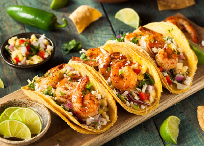 Tacos được xem như “linh hồn” của ẩm thực Mexico. Món ăn được chế biến từ bánh ngô hoặc bánh mì tortilla kẹp nhân gồm: thịt bò, thịt gà, thịt heo, cá, tôm kèm rau củ, phô mai và các loại nước sốt cay nồng. Điều hấp dẫn ở món ăn này đó là có nhiều cách chế biến với các hương vị khác nhau, tạo nên sự phong phú về hương vị.