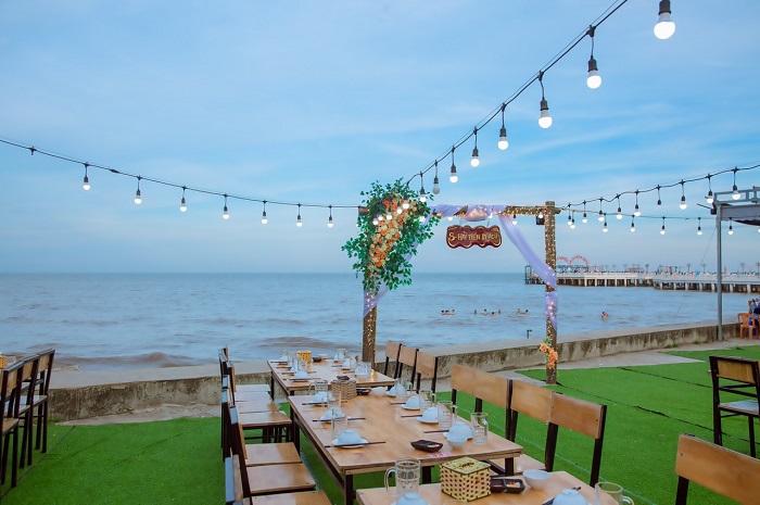 Không thể bỏ qua trong danh sách các nhà hàng hải sản ngon - rẻ mà lại có view cực đỉnh ở biển Hải Tiến là S-Hải Tiến Beach. Điểm nhấn của nhà hàng là vị trí nằm ngay cạnh cầu cảng, bố trí khu vực ăn uống ngay sát mặt biển và tầm nhìn đẹp. Từ đây thực khách dễ dàng tận hưởng những cơn gió mát lành từ biển thổi vào và tranh thủ chụp được cả loạt ảnh xinh.