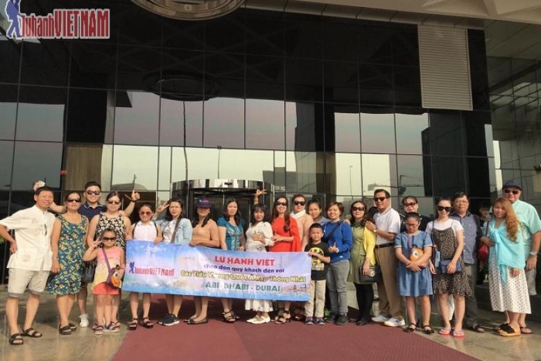 Xe đưa đoàn thăm quan Abu Dhabi - thủ đô của các tiểu Vương Quốc Ả Rập Thống Nhất - cách Dubai 150km, xe đưa đoàn ghé thăm các điểm thăm quan nổi tiếng