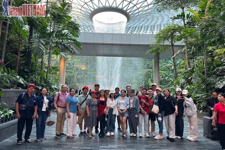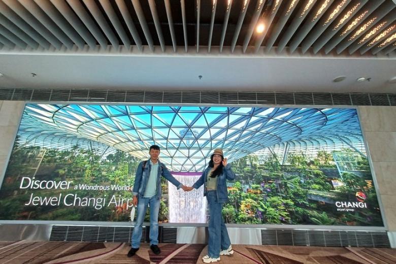 11h55: Đoàn đến sân bay quốc tế Changi – Singapore – được mệnh danh là sân bay tuyệt vời nhất thế giới với 6 khu vườn Bách Thảo, sân bay được trang bị đầy đủ dịch vụ như phòng nghe nhạc, hồ bơi, khu giải trí, khách sạn, trung tâm mua sắm. Đoàn tham quan Thác nước Jewel Changi – địa điểm check in hot nhất Singapore hay còn được biết đến với tên Rain Vortex là thác nước trong nhà cao nhất thế giới, với độ cao 40m. Thác được bao quanh bởi hệ sinh thái với 2.500 cây xanh và 100.000 bụi cây, tạo cho du khách như lạc vào một khu rừng nhiệt đới thu nhỏ.