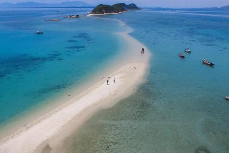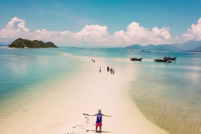 Điều đặc biệt chính là hành trình chinh phục con đường dưới biển vô cùng độc đáo và thú vị dài gần 700 mét, nối liền hòn đảo giữa với đảo Điệp Sơn lớn. Con đường uốn lượn, rộng khoảng 1 mét và nằm sâu dưới mặt nước biển trong xanh chưa đến nửa mét. Đi bộ trên con đường này đem lại cảm giác vô cùng thích thú, xen lẫn hồi hộp và một chút sợ hãi khi bạn phải bước giữa đại dương bao la. Bạn có thể thỏa thích ngắm nhìn những đàn cá nhỏ tung tăng bơi lội hai bên, chốc chốc lại thấy những đàn cá nhảy tung lên khỏi mặt nước, hay giơ tay vẫy chào con thuyền đang chạy lướt qua. Quý khách tự do tắm biển.
