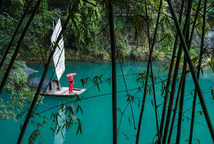 Chinh phục toàn cảnh khu sinh thái Quan Môn Sơn rộng 8km, hai bên đường là rừng thường xanh lá rộng đặc trưng của khu vực nhiệt đới Bắc Á, chiêm ngưỡng những mặt cắt núi đá hình thù kỳ lạ, những phiến đá xếp chồng nghìn năm và những mạch nước ngầm uốn lượn.