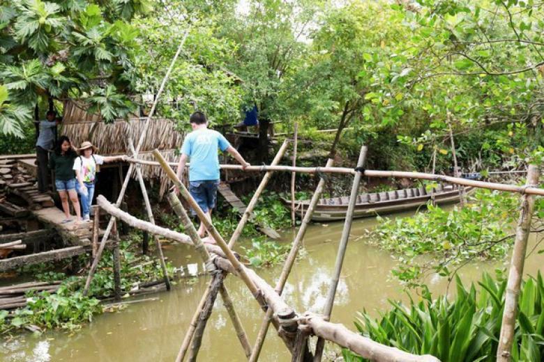 06h00: Thuyền tiếp tục vào rạch nhỏ tham quan cơ sở sản xuất hủ tiếu – thưởng thức đặc sản pizza hủ tiếu (chi phí tự túc)