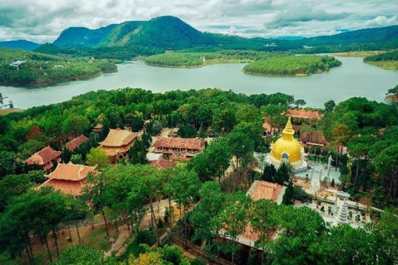 Thiền viện Trúc lâmĐà Lạt được xuất hiện rất nhiều trong những ca khúc trữ tình, được người nhạc sĩ ưu ái đặt cho cái tên mộng mơ là "Thành phố sương mù". Nằm trên Cao nguyên Lâm Viên với không khí quanh năm se lạnh, được ví là "tiểu Paris", Đà Lạt chính là thiên đường nghỉ dưỡng và du lịch được nhiều du khách yêu thích. Đến với Đà Lạt, du khách được khám phá những cánh rừng thông đại ngàn, những vườn hoa quanh năm đua hương khoe sắc, những điểm du lịch nổi tiếng như: Nhà thờ chánh tòa, nhà thờ Domain De Marie, Dinh Bảo Đại, Thiền viện Trúc Lâm, Thác Dantala,...và những con nước chảy mải miết trong veo... tất cả đã tạo nên một Đà Lạt nên thơ, trữ tình khiến người đến không nỡ đi, người đi rồi cứ nhớ mãi không thôi.
