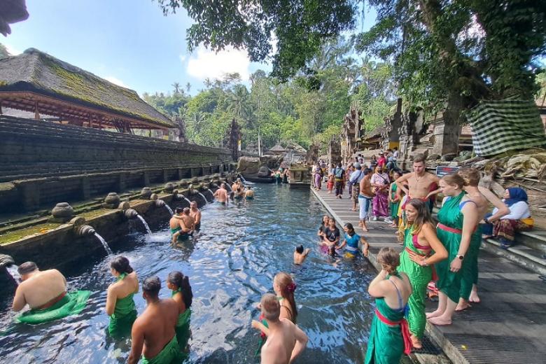 Nằm gọn trong một thung lũng yên bình giữa hai quả đồi ở làng Manukaya, cách thủ phủ Denpasar khoảng 40km về phía Đông Bắc, Đền Suối Thiêng Tampak Siring là một trong những ngôi đền Hindu giáo lâu đời và linh thiêng nhất của Bali. Theo truyền thuyết, ngôi đền được xây dựng từ năm 926 sau Công nguyên, thờ phụng Thần Vishnu - vị thần bảo vệ của vũ trụ. Người dân Bali tin rằng nguồn nước từ các suối thiêng trong đền có sức mạnh tẩy rửa tàm uế, mang lại may mắn, bình an cho những người đến đây tắm rửa và cầu nguyện. Cũng chính vì thế mà từ lâu, địa danh này đã trở thành điểm đến hấp dẫn thu hút đông đảo người ghé tham quan khi du lịch Bali.