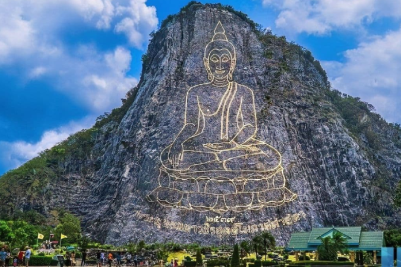 Chiều: Quý khách đi thăm quan Khao Cheechan - Trân Bảo Phật Sơn: là bức tượng được khắc nổi bằng vàng 24k trên ngọn núi tại Chon Buri cao lớn và vô cùng uy nghi. Bức tượng Phật có độ cao 100m và có chiều rộng 70 m được khắc bằng tia laser. Tượng Phật được khắc nổi trên núi Phật Sơn với ý nghĩa Đức Phật với trí tuệ vĩ đại. Dưới chân núi Phật Sơn là vườn hoa, công viên cây xanh, hồ nước trồng hoa sen.