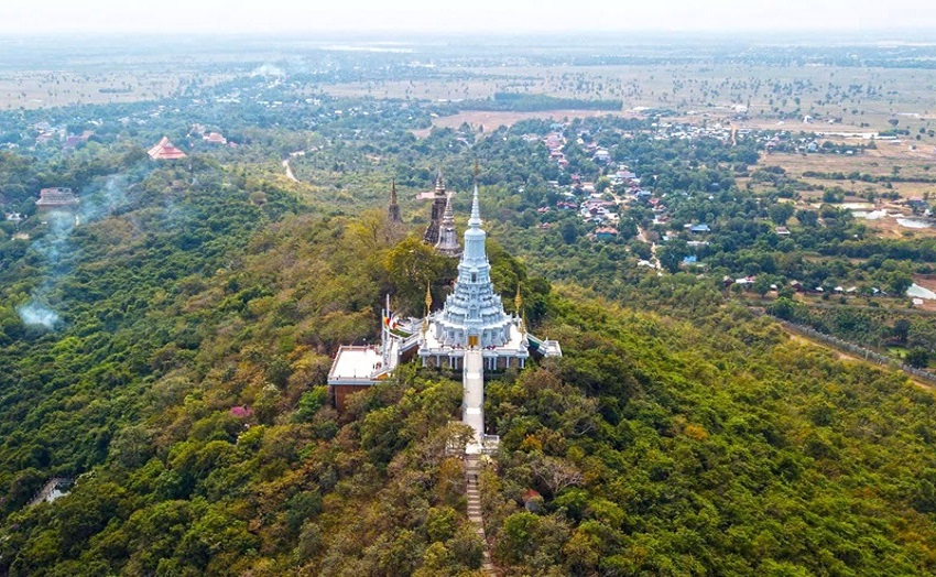 Hình dáng của cố đô Oudong Campuchia có phần giống với con rắn thần Naga nằm trên ngọn núi cao. Ngay dưới chân núi bạn sẽ tìm được một đài tưởng niệm lớn gợi nhớ về những người đã mất trong cuộc thảm sát Khmer đỏ. Gần đó có bức tượng Phật bị tàn phá trong chiến tranh nhưng vẫn còn nguyên vẹn phần bàn chân. Phía trên đỉnh núi chính là khu vực rộng lớn gồm nhiều công trình độc đáo, dù bị bom đạn ảnh hưởng nặng nề nhưng vẫn có nét thu hút rất riêng không đâu sánh bằng.