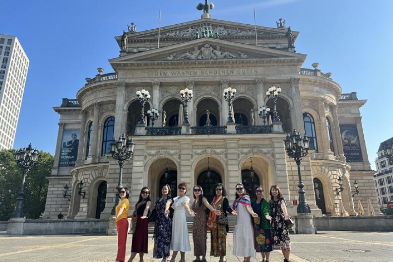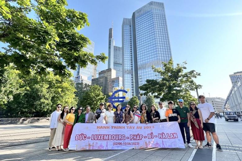 Đoàn hạ cánh xuống sân bay Frankfurt. Xe đón đoàn, đưa đi tham quan: