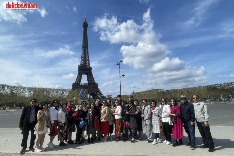 Khách chụp ảnh lưu niệm ở tháp EiffelSáng: Đoàn ăn sáng tại khách sạn, trả phòng khách sạn, di chuyển đến Nancy - Một trong hai thủ phủ của Giáo hội Công giáo La Mã tại Pháp và Thành phố đặc trưng bởi màu vàng gạch.