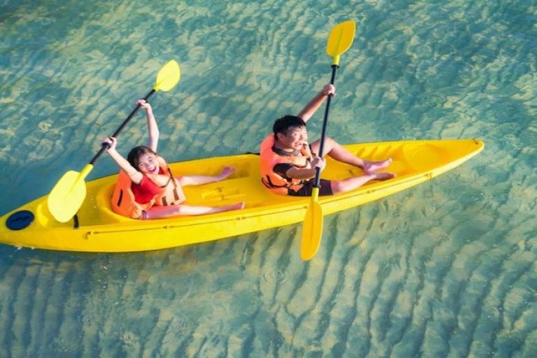 10h30: Tàu di chuyển đến khu vực giáp danh vịnh Hạ Long, tham ra hoạt động chèo thuyền kayaking khám phá vẻ đẹp của Vịnh Lan Hạ