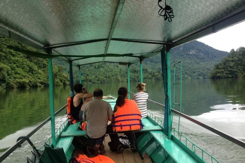 08h00: Quý khách bách bộ lên ra bến thuyền và xuống thuyền thăm quan Hồ Ba Bể vừa thư giãn ngắm cảnh hồ, tự do chụp hình và ghé thăm các điểm sau: