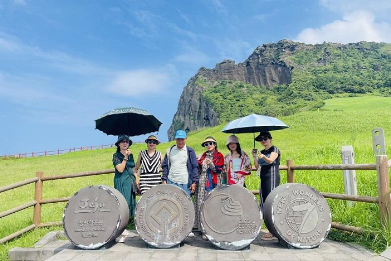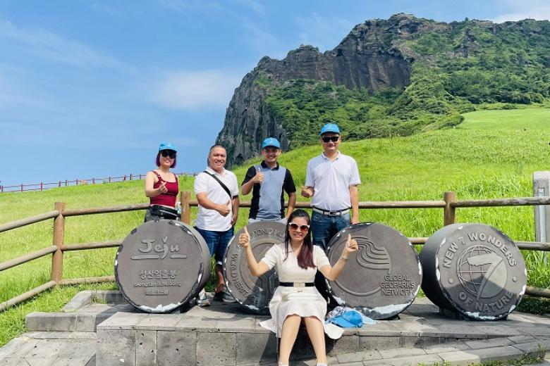 Trước khi ghé đến thăm quan đỉnh núi đầu rồng, biểu tượng của đảo Jeju, đoàn ghé thăm quan và mua sắm tại siêu thị miễn thuế Shilla hoặc Lotte.