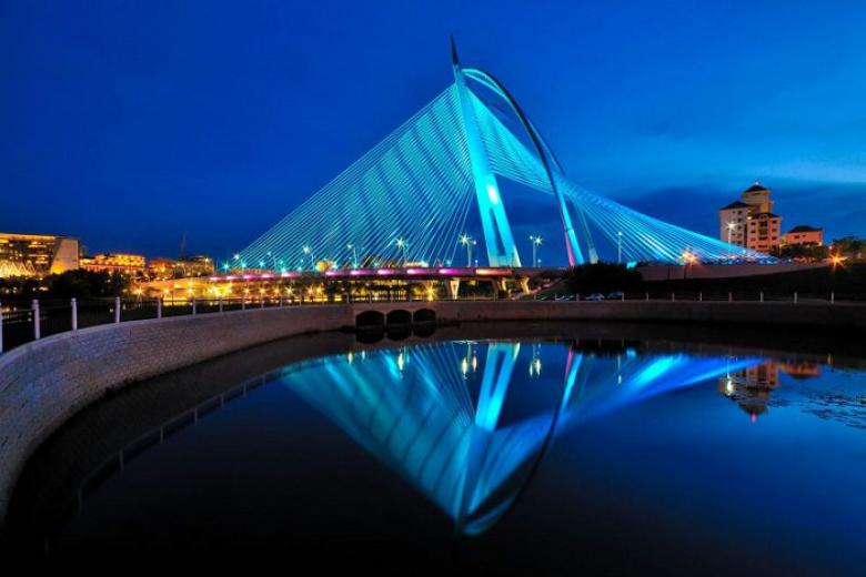 Hành trình tour du lịch Malaysia 3 ngày sẽ đưa du khách đến tham quan Cầu Seri Wawasan - cây cầu cáp treo có hình dạng con thuyền đang giương buồm. Cầu có 3 làn xe mỗi chiều và 18,6 m chiều rộng một chiều, được làm bằng bê tông với các loại cáp bằng thép chịu lực.