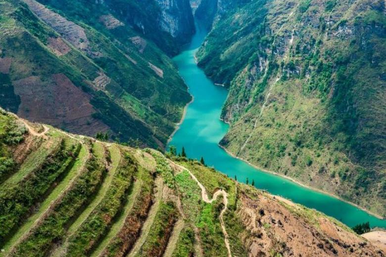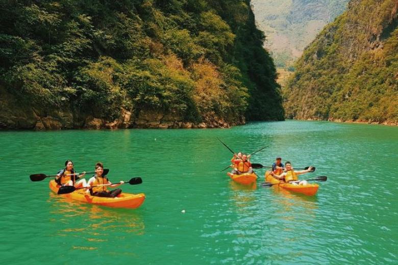 Tiếp tục hành trình, Quý khách di chuyển xuống bến thuyền sông Nho Quế, tại đây quý khách sẽ chiêm ngưỡng vẻ đẹp hùng vĩ của hẻm vực Tu Sản cũng như là màu xanh thơ mộng