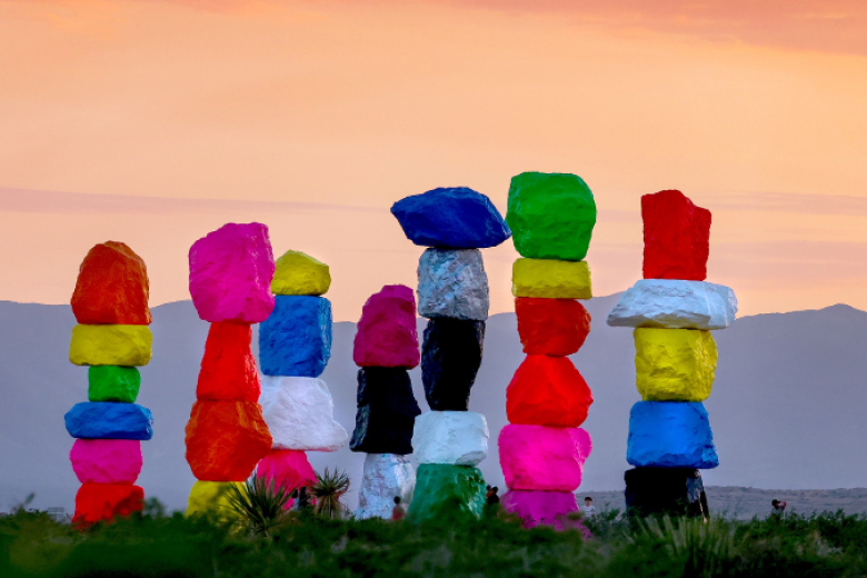 Đặt chân đến tham quan công viên đá 7 màu ở Mỹ, bạn chắc chắn sẽ phải ngỡ ngàng trước sự sáng tạo của con người cũng như sự kỳ diệu của tạo hóa. Điểm nhấn chính của công viên nằm ở 7 cột đá khổng lồ xếp chồng lên nhau một cách cực kỳ ngoạn mục. Để thực hiện được tác phẩm này, người ta đã phải sử dụng 33 tảng đá vôi cực lớn, mỗi tảng nặng từ 10 đến 25 tấn, xếp chồng chúng lên nhau tạo thành 7 tòa tháp, cao từ 9 đến 11 mét. Mỗi tảng đá lại được sơn một màu sắc khác nhau, tạo nên một vẻ đẹp rực rỡ khiến bất cứ ai khi đặt chân đến cũng phải ngẩn ngơ ngắm nhìn.
