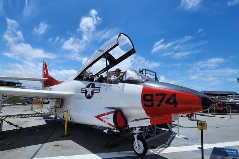 USS Midway - là hàng không mẫu hạm có hải trình phục vụ 47 năm, là mẫu hạm phục vụ lâu nhất của quân đội Mỹ trong thế kỷ 20, từ cuối chiến tranh TG II (WWII) cho đến cuộc chiến giải phóng Kuwait 1991, trước khi " về hưu" vào năm 1992. Trong đó, đáng nhớ nhất là USS Midway đã từng tham gia 2 cuộc chiến: chiến tranh Vietnam và cuộc chiến vùng vịnh (bão sa mạc) 1991. Quý khách chụp ảnh bên ngoài.