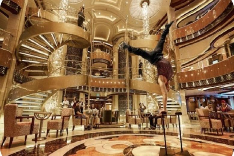 Quý khách tham gia các hoạt động vui chơi giải trí trên du thuyền như: nhà hát với các vở nhạc kịch xa hoa hay thưởng thức một bộ phim bom tấn cạnh hồ bơi hoặc đơn giản là thư giãn trong phòng khách nhấm nháp ly cocktail nơi ban nhạc đang chơi bài hát yêu thích của bạn.