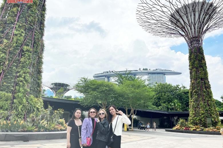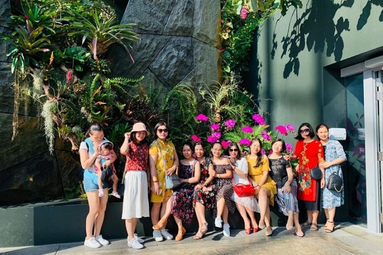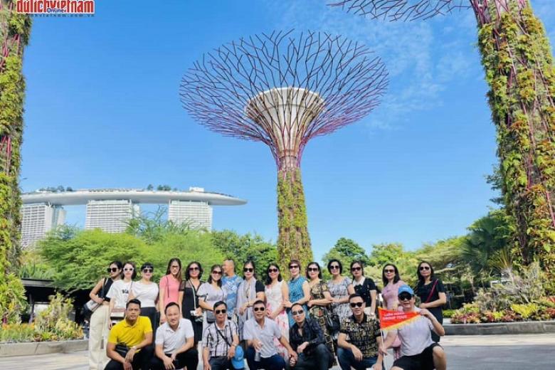 Xe đưa đoàn đi tham quan và chụp hình bên ngoài Khu vườn năng lượng (Gardens by the Bay) - khu vườn sinh thái đặc biệt với các siêu cây năng lượng mặt trời lên đèn lung linh ở phía nam Singapore với vẻ đẹp kỳ thú lạ thường. Đặc biệt, du khách được chiêm ngưỡng Vườn treo Floral Fantasy - một trong những khu trưng bày cắm hoa tươi lớn nhất với thiết kế đặc biệt đầy màu sắc rực rỡ của bức “rèm hoa” với hơn 15.000 bông hoa treo ngược trần nhà, được lấy cảm hứng thiết kế từ vườn treo Babylon với bốn khu vực gồm: Dance, Float, Waltz và Drift.