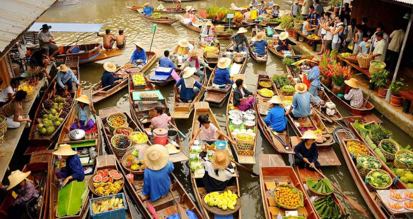 Lênh đênh trên những chiếc thuyền gỗ mộc mạc, du khách sẽ được đắm chìm trong không gian sôi động, náo nhiệt của Chợ nổi 4 miền Pattaya. Nơi đây tái hiện hoàn hảo nét văn hóa đặc trưng của 4 vùng miền Thái Lan: Bắc, Trung, Nam và Đông Bắc, với những gian hàng rực rỡ sắc màu, tiếng rao mời chào vang vọng và những món ăn thơm ngon khó cưỡng.
