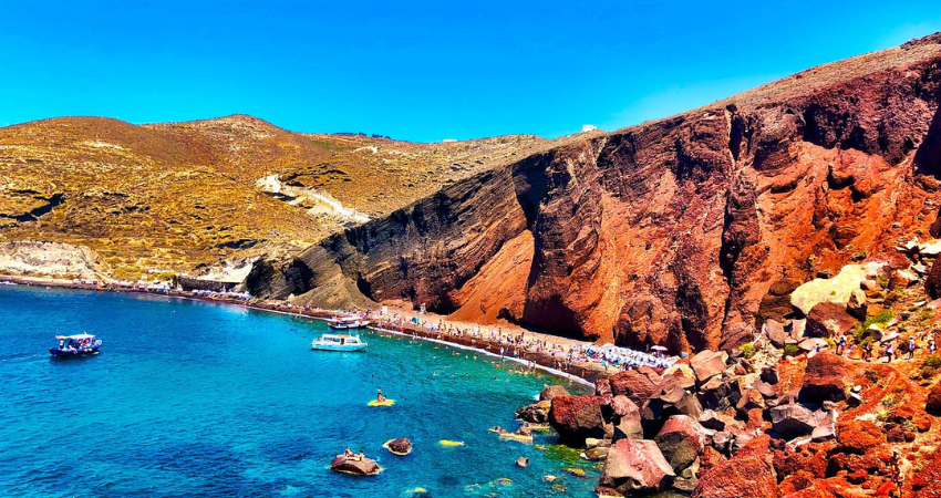 Red BeachBãi biển này nổi tiếng với màu sắc độc đáo của cát và đá, được hình thành từ quá trình phun trào núi lửa hàng triệu năm trước. Du khách đến đây có thể thư giãn trên bãi cát, tắm biển, lặn ngắm san hô hoặc đơn giản chỉ là tận hưởng không khí trong lành và khung cảnh tuyệt đẹp của biển Aegean.