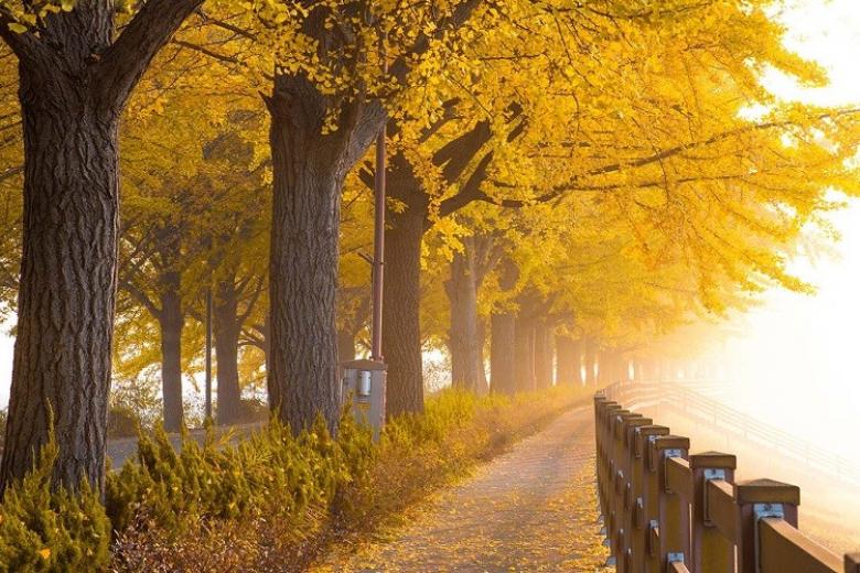 Du khách thăm quan Đảo Nami – Nổi tiếng với những tán lá phông đỏ rực một góc trời cùng hàng ngân hạnh vàng rực, thẳng tắp và là nơi ra đời của nhiều bộ phim truyền hình nổi tiếng Hàn Quốc đã làm dấy lên cơn sốt nghệ thuật thứ bảy tại các nước CHÂU Á và thế giới như: "Bản Tình Ca Mùa Đông"...