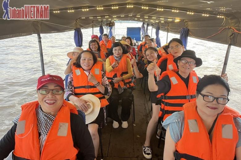 Đến Mỹ Tho, Đoàn di chuyển ra bến tàu Du lịch Sinh Thái Mỹ Tho, lên thuyền bắt đầu ngắm cảnh 4 cồn: Long, Lân, Qui, Phụng: