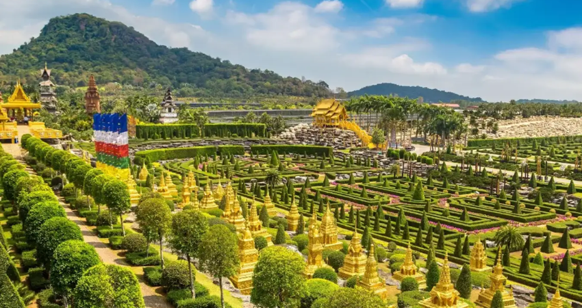 Vườn nhiệt đới Nong NoochTại đây, du khách được tận hưởng bầu không khí trong lành, dạo bước giữa những khu vườn được thiết kế theo phong cách đa dạng, từ vườn Pháp lãng mạn đến khu vườn xương rồng gai góc, hay khu vườn bướm đầy màu sắc.