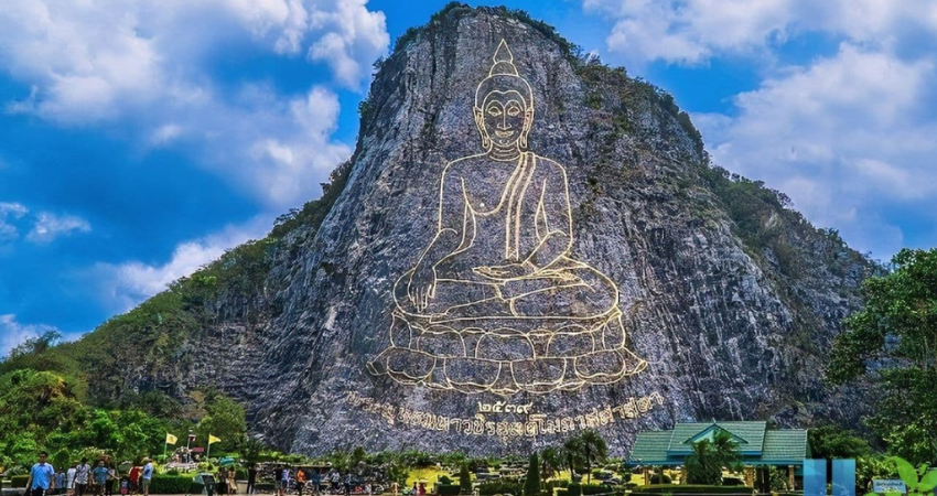 Nằm tại tỉnh Chonburi, Thái Lan, Khao Chee Chan là điểm đến thu hút du khách bởi bức tượng Phật Thích Ca Mâu Ni khổng lồ được khắc nổi trên vách núi đá vôi cao hơn 100 mét. Tượng Phật được dát vàng ròng 24K, tạo nên vẻ đẹp uy nghi và linh thiêng. Ngoài ra, Khao Chee Chan còn sở hữu cảnh quan thiên nhiên hùng vĩ với những ngọn núi đá vôi nhấp nhô, những hang động bí ẩn và hệ sinh thái đa dạng. Du khách đến đây có thể tham gia các hoạt động như leo núi, trekking, khám phá hang động, hay đơn giản là ngắm nhìn cảnh quan ngoạn mục từ trên cao.