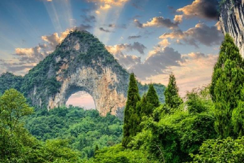 • Núi Vòi Voi - Biểu tượng của thành phố Quế Lâm, dòng nước chảy xuyên qua hang tạo nên cảnh “hai vầng trăng trên sông Ly” độc đáo