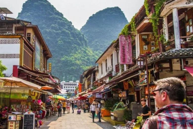 Nằm bên dòng sông Li thơ mộng, Hưng Bình cổ trấn được ví như bức tranh thủy mặc sống động của vùng Quế Lâm. Với lịch sử hơn 1.700 năm, nơi đây lưu giữ nguyên vẹn vẻ đẹp cổ kính, những con phố đá rêu phong, mái nhà ngói đen soi bóng xuống mặt nước xanh biếc. Hưng Bình không chỉ mê hoặc du khách bằng cảnh quan sơn thủy hữu tình mà còn bởi bầu không khí trầm mặc khiến bất cứ ai đặt chân đến cũng ngỡ như lạc vào một miền ký ức xưa cũ.