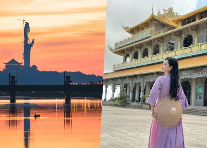 Du lịch Quảng Ngãi không chỉ có Lý Sơn thơ mộng mà còn có rất nhiều điểm đến hấp dẫn khác, và một trong số đó là chùa Minh Đức – ngôi chùa nổi tiếng với bức tượng Phật cao 125m. Giữa cảnh sắc thiên nhiên bình yên của xứ Quảng, chùa Minh Đức Quảng Ngãi như một nét chấm phá tạo nên vẻ quyến rũ rất riêng và đậm dấu ấn linh thiêng của vùng đất. Check-in tại chùa Minh Đức, du khách sẽ được thả hồn theo tiếng chuông ngân, lắng nghe những câu chuyện Phật pháp ý nghĩa, ngắm nhìn vẻ đẹp tuyệt sắc của cảnh sắc thiên nhiên và tận hưởng nhịp sống chậm rãi, bình yên, có một hành trình tâm linh thật trọn vẹn và an lạc.