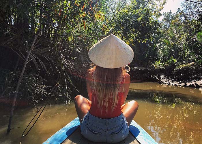 Ngồi xuồng ba lá. Ảnh: @followthesunjulia
