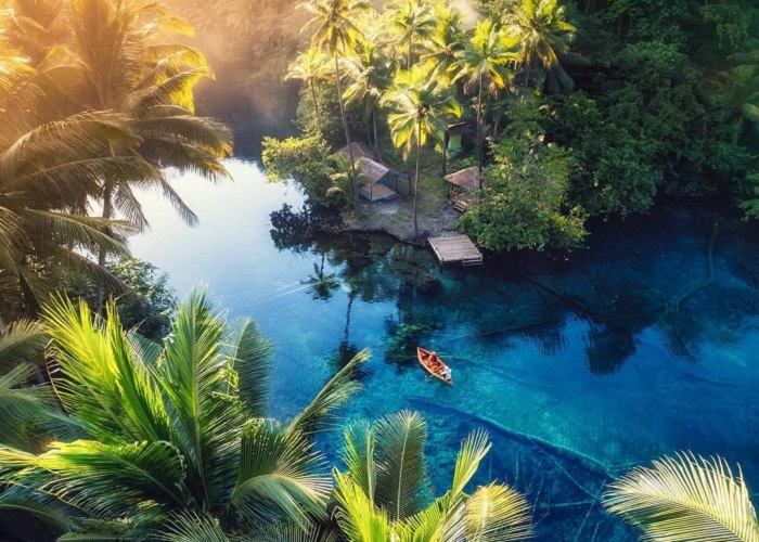 Một trong những hồ nước trong nhất thế giới nằm ở châu Á chính là Paisu Pok tọa lạc trên đảo thuộc quần đảo Banggai, Indonesia. Paisu Pok còn được gọi là hồ gương – một hồ nước nằm ẩn mình trong những cánh rừng già thăm thẳm. Không phải là một điểm đến quá phổ biến nhưng ai đã đến đây rồi đều không nở lòng rời đi bởi vẻ đẹp như được tạo thành bởi AI của hồ nước này.