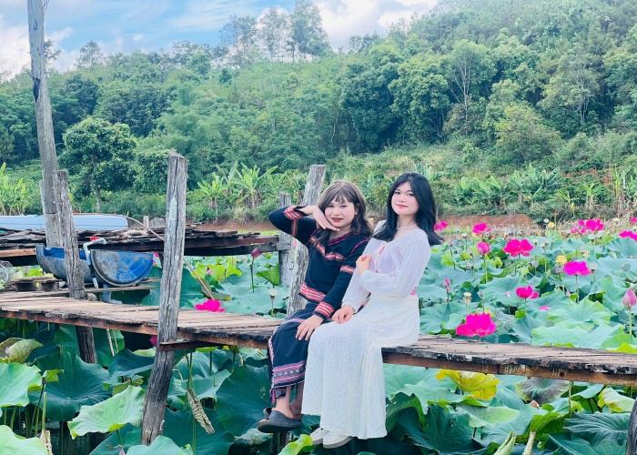 Check in vào mùa sen hồ Ia Bang Gia Lai, du khách sẽ được ngắm nhìn khung cảnh yên bình, mát mẻ của miền quê xứ cao nguyên. Giữa không gian ấy, những đóa sen nở rực rỡ, xung quanh là đồi thông xanh biếc tạo nên một không gian đầy thơ mộng và đậm chất thơ.