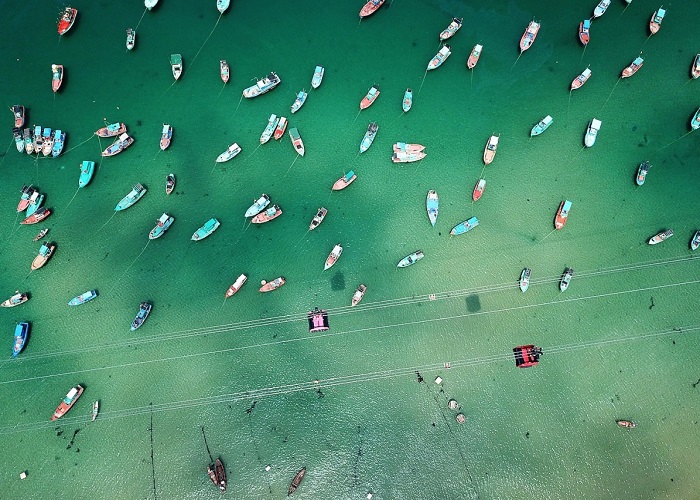 Cáp treo Hòn Thơm nối thị trấn An Thới tới Hòn Thơm với tổng chiều dài 7,9km– hòn đảo xanh màu rừng già và nguyên nét hoang sơ như chưa từng có bàn tay con người chạm đến.